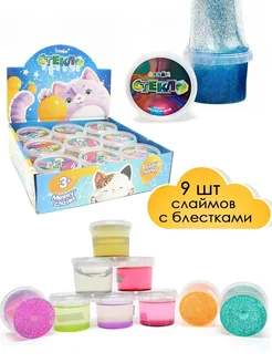 Набор слаймов Стекло с блестками 90 г (9 шт) 00-00001280