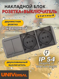 Розетка двойная с выключателем накладная уличная