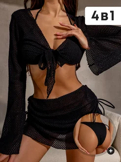 Раздельный женский купальник 4в1 с туникой (парео) и юбкой