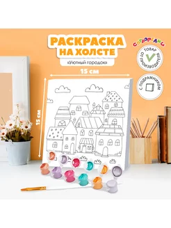 Раскраска на холсте с подрамником Уютный городок 15х15