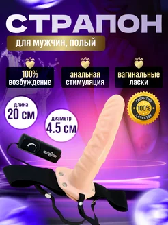 Полый страпон телесного цвета с встроенным вибратором 20 см