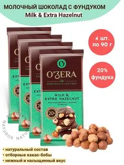 Шоколад молочный с цельным фундуком, 4 шт по 90 г