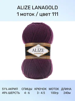 Пряжа ALIZE LANAGOLD 1 шт 240 м 100 г цвет 111