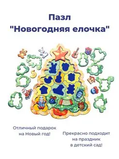 Пазл фигурный Новогодняя елочка деревянная для детей