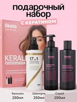 Подарочный набор шампунь с кератином, бальзам, спрей 17 в 1