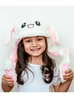 Шапка с Двигающимися Ушками Белая. Светящаяся Детская 1 шт