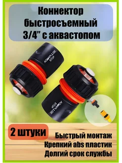 Коннектор быстросъемный для шланга 3 4 (со стопом) (2 штуки)