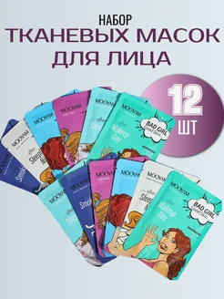 Косметические маски для лица тканевые набор 12шт BAD GIRL