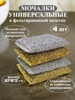 Мочалка для эмали и тефлона в фольгированной оплетке, 4шт