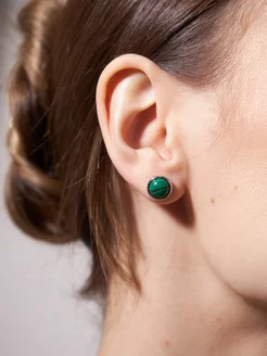 Серьги гвоздики пусеты с натуральным камнем посеребрение