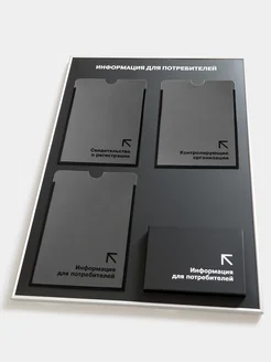 Уголок потребителя с 4-мя карманами А4, чёрный, 770х570 мм