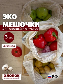 Многоразовые экомешочки хлопковые, 3 штуки, размер 30*43 см