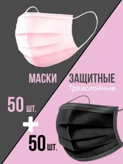 Комплект маски медицинские 200 шт- розовые 100 шт + черные 1…