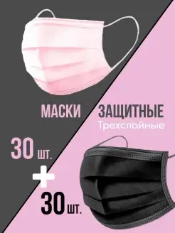 Комплект масок одноразовых - розовые и черные - 60 штук