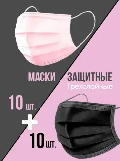Комплект масок одноразовых - розовые и черные - 20 штук