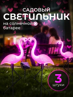 Фламинго-фонарики садовые на солнечных батареях,3 шт