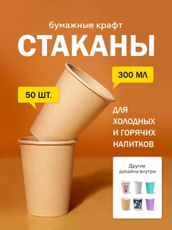 Бумажные одноразовые стаканы, 300 мл, Крафт, 50 шт