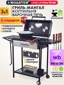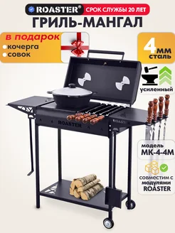 Мангал гриль усиленный 4мм с крышкой и полками для дачи
