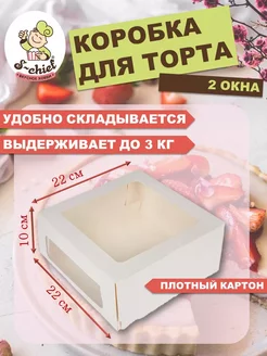 Кондитерская коробка для торта с двумя окнами 22 x 22 x 10см