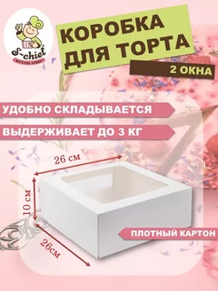 Кондитерская коробка для торта с двумя окнами 26 x 26 x 10см