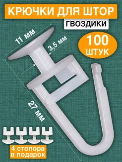 Крючки для штор и пластиковых карнизов гардин 100шт гвоздик