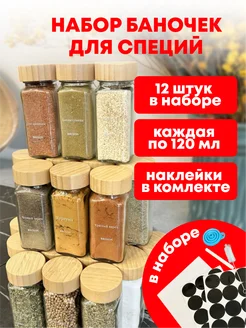 Стеклянные баночки для специй с наклейками набор 12 шт