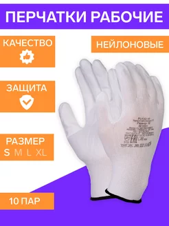 Перчатки рабочие строительные нейлоновые с обливом 10 пар