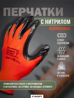 Рабочие перчатки строительные нейлоновые с нитрилом