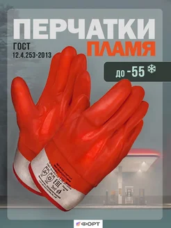 Перчатки защитные ПВХ утеплённые бензомаслостойкие Пламя
