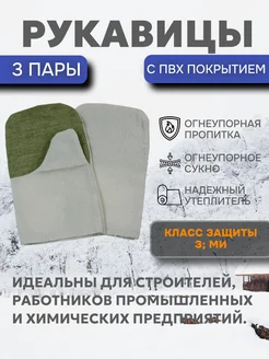 3 пары Рукавицы рабочие защитные для сварки, стройки