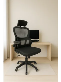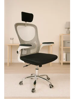 Кресло компьютерное на колесах с подлокотниками сетчатое