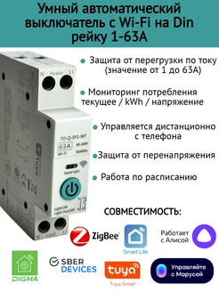 Умное реле-автомат WIFI на Din рейку 1-63 А