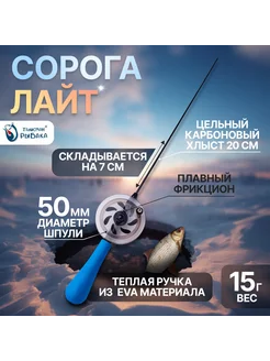 Зимняя удочка "Сорога Лайт" вес 15гр, хлыст 20см, Лазурь