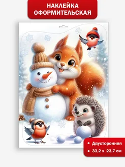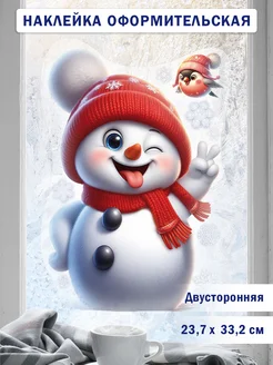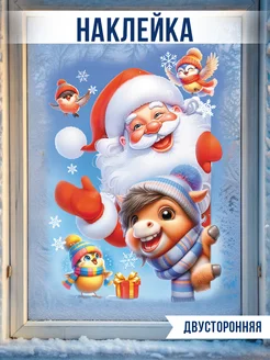 Двусторонняя новогодняя наклейка на окно для детского сада