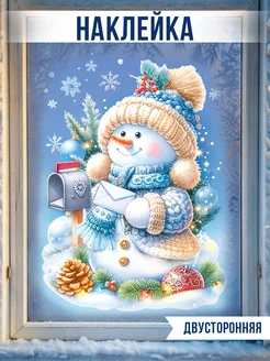 Новогодние двусторонние наклейки на окна на Новый год 2025