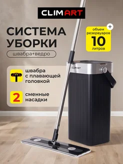 Умная швабра с отжимом и ведром для пола 10 литров черная