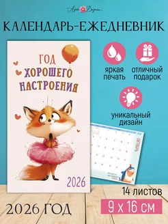 Календарь на холодильник 2026, набор 2 шт 10х15 см магнитный
