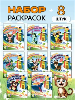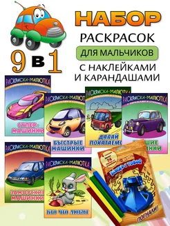 Набор раскрасок для мальчика 7 штук + наклейки карандаши