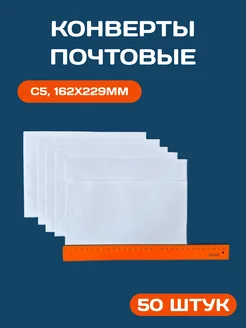 Конверты бумажные почтовые, С5, 162x229 мм, стрип, 50 штук
