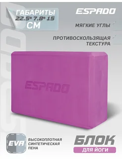 Блок для йоги растяжки и фитнеса гимнастический 1 шт