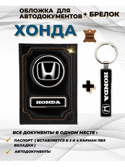 Обложка для автодокументов Хонда Honda из натуральной кожи