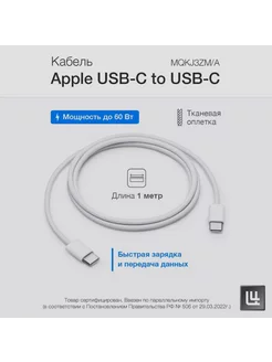 Кабель USB-C to USB-C тканевый, для iPhone, 1 метр