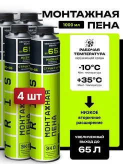 Профессиональная пена монтажная, с выходом до 65 л, 4 шт