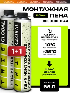 Профессиональная монтажная пена 2шт. GLOBAL 65л всесезонная