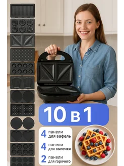 Мультипекарь 10 в 1, вафельница со сменными панелями