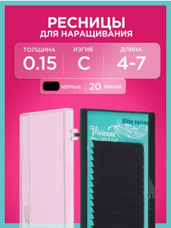 Ресницы для наращивания черные Elite 0,03 С+ 7 мм