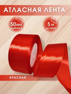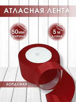 Лента атласная 5 см бордовая для подарка и рукоделия