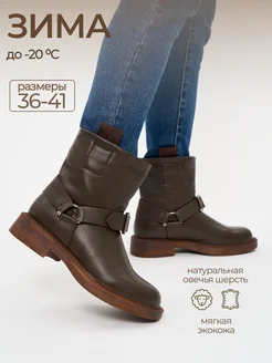 Ботинки зимние чопперы из экокожи с натуральной шерстью