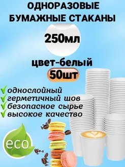 Бумажный однослойный стакан 250мл, 50шт. D80