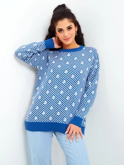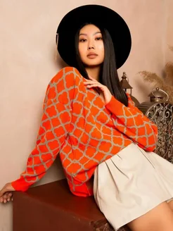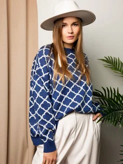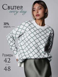 Свитер джемпер оверсайз вязаный с принтов